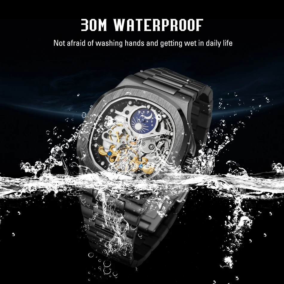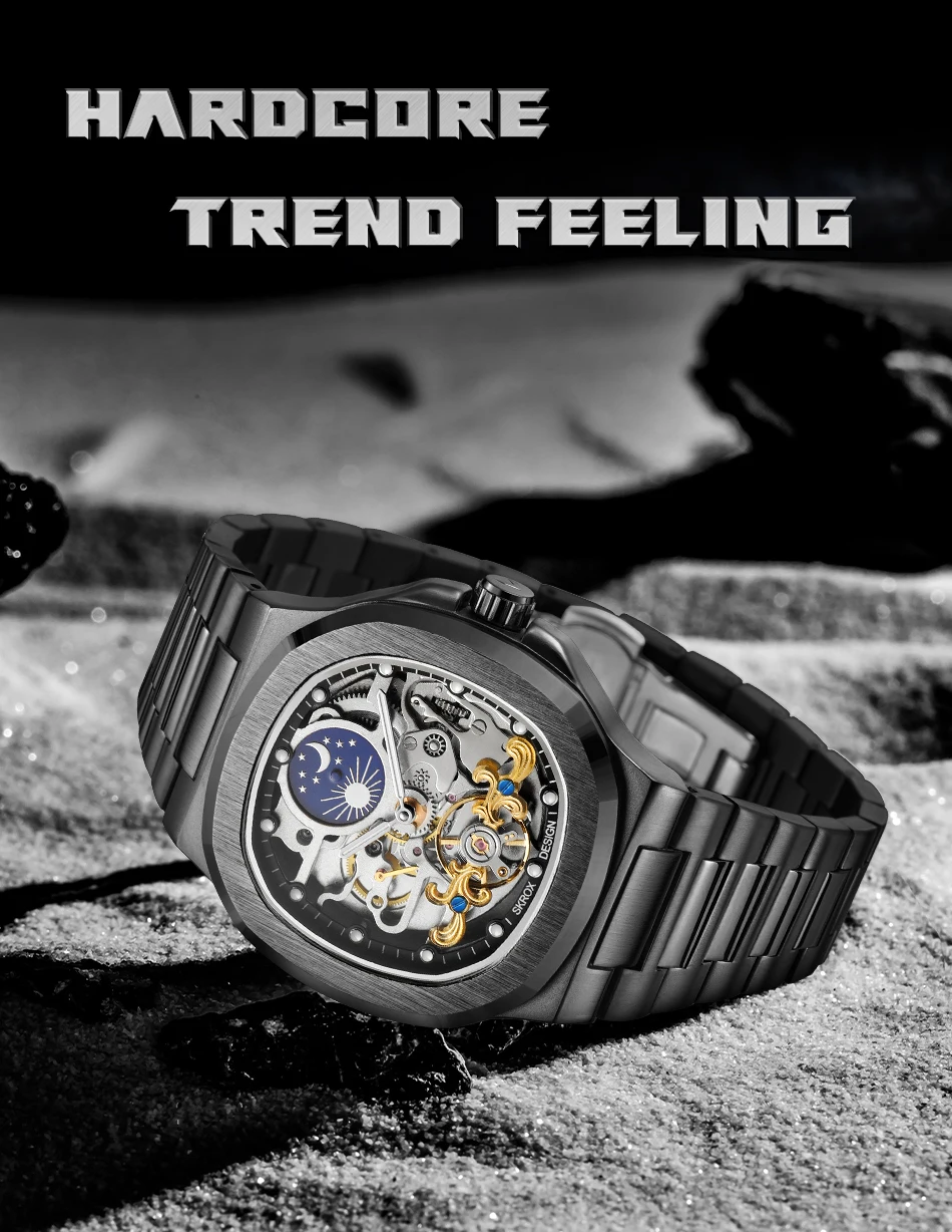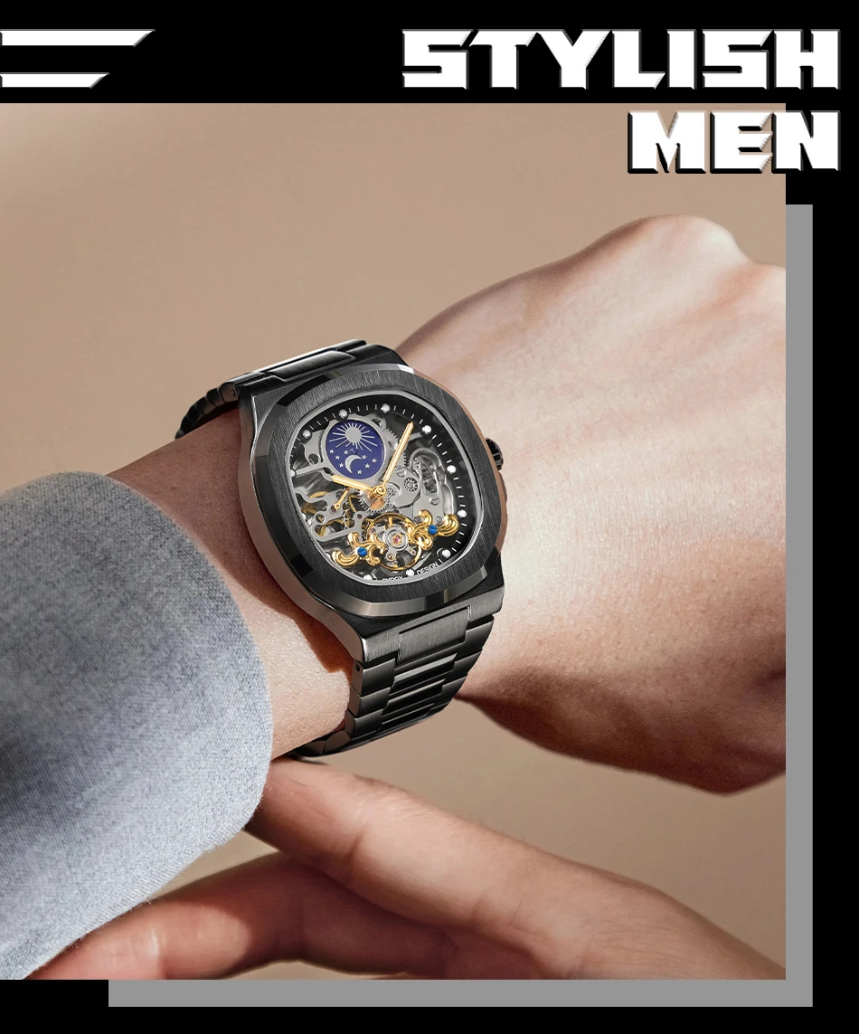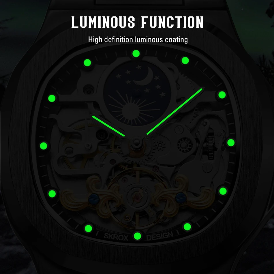 Feature: tourbillon,Skeleton,Luminous,Moon Phase,Screw crown