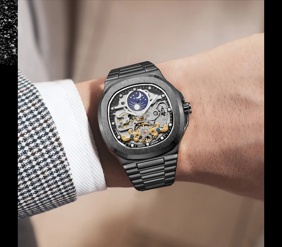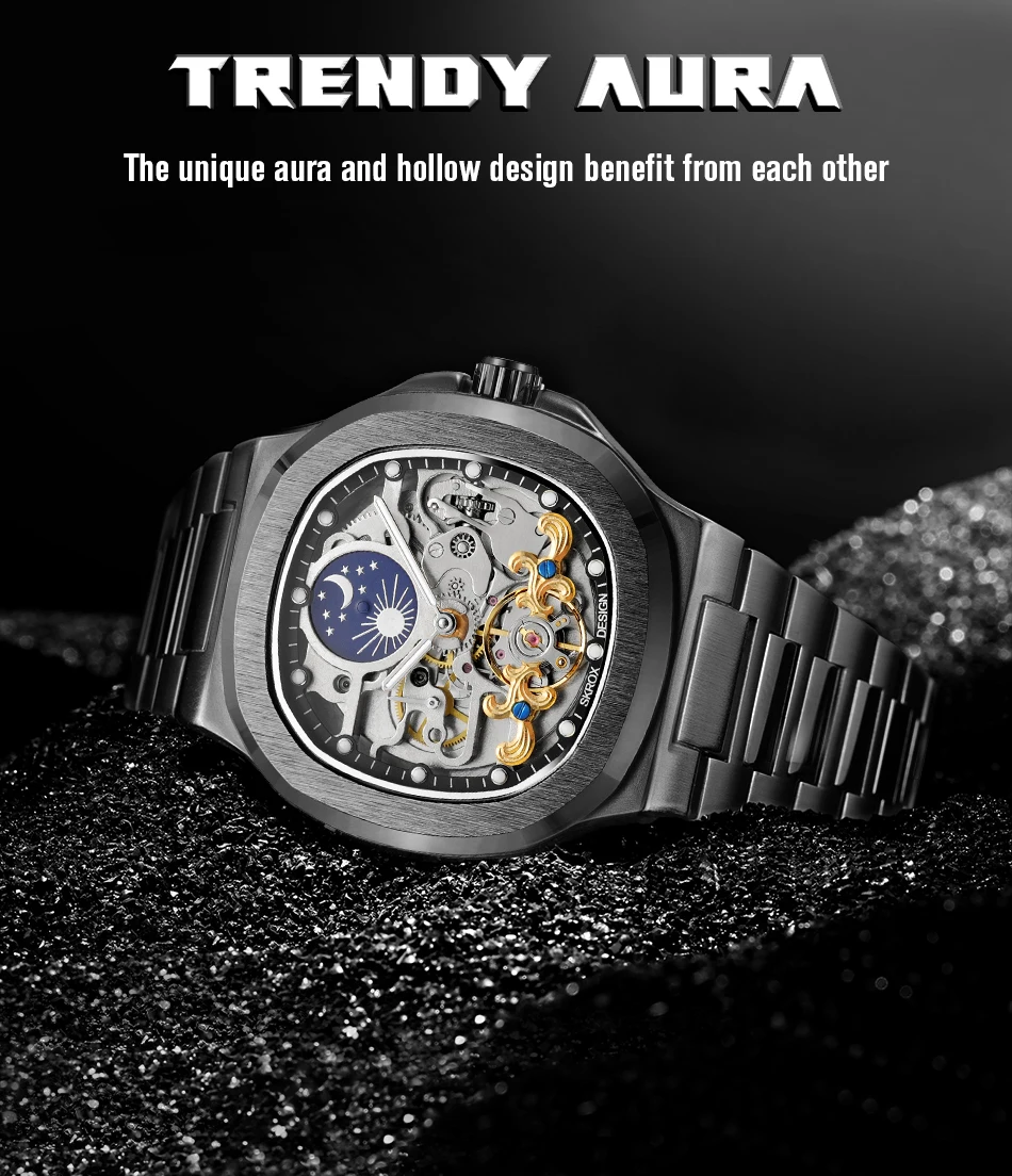 - Skeleton dial design reveals your fashionable point of view.