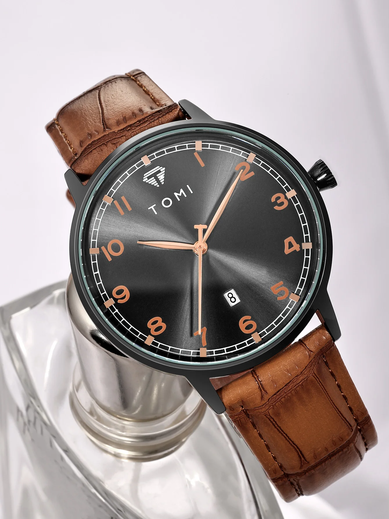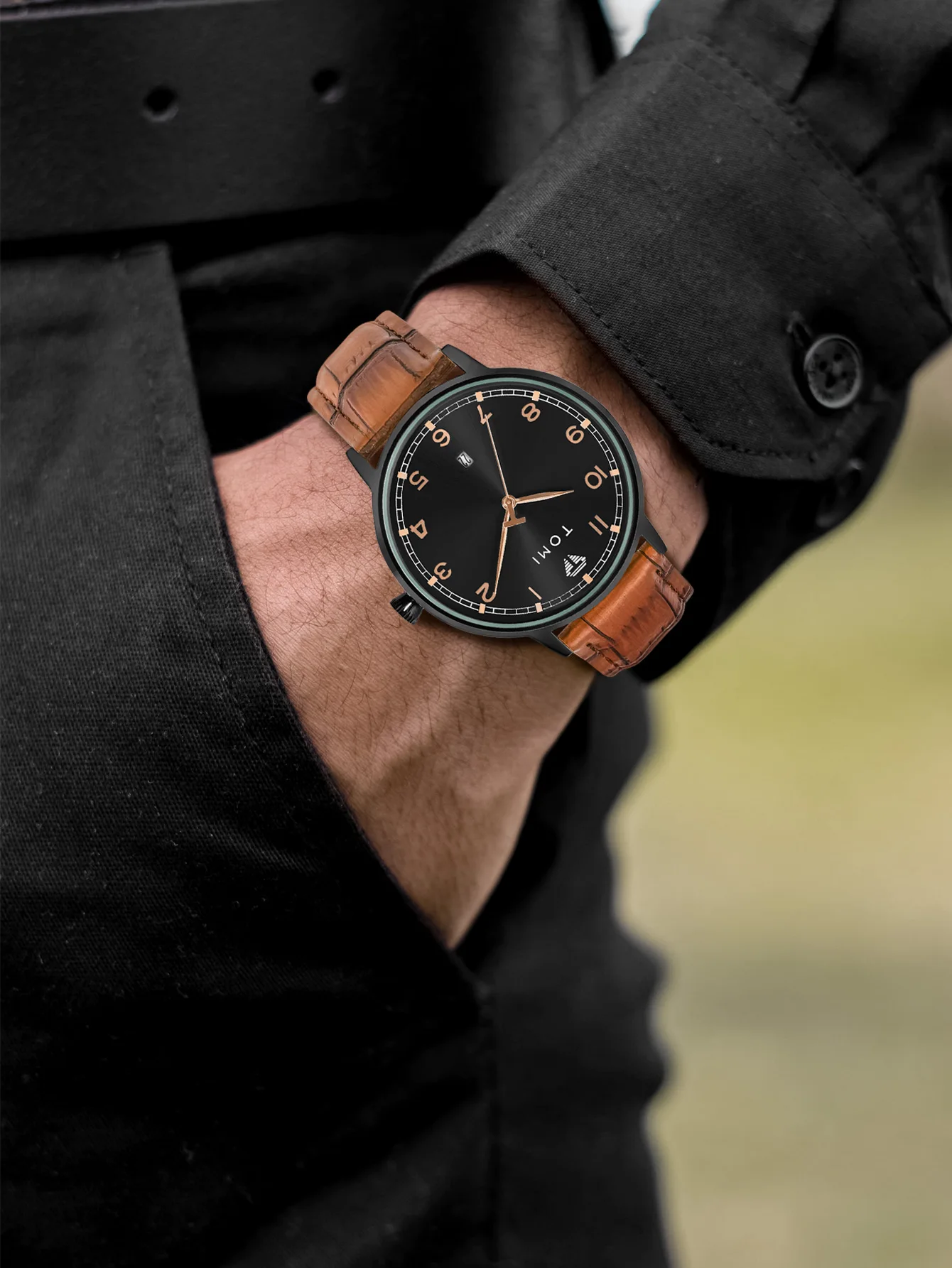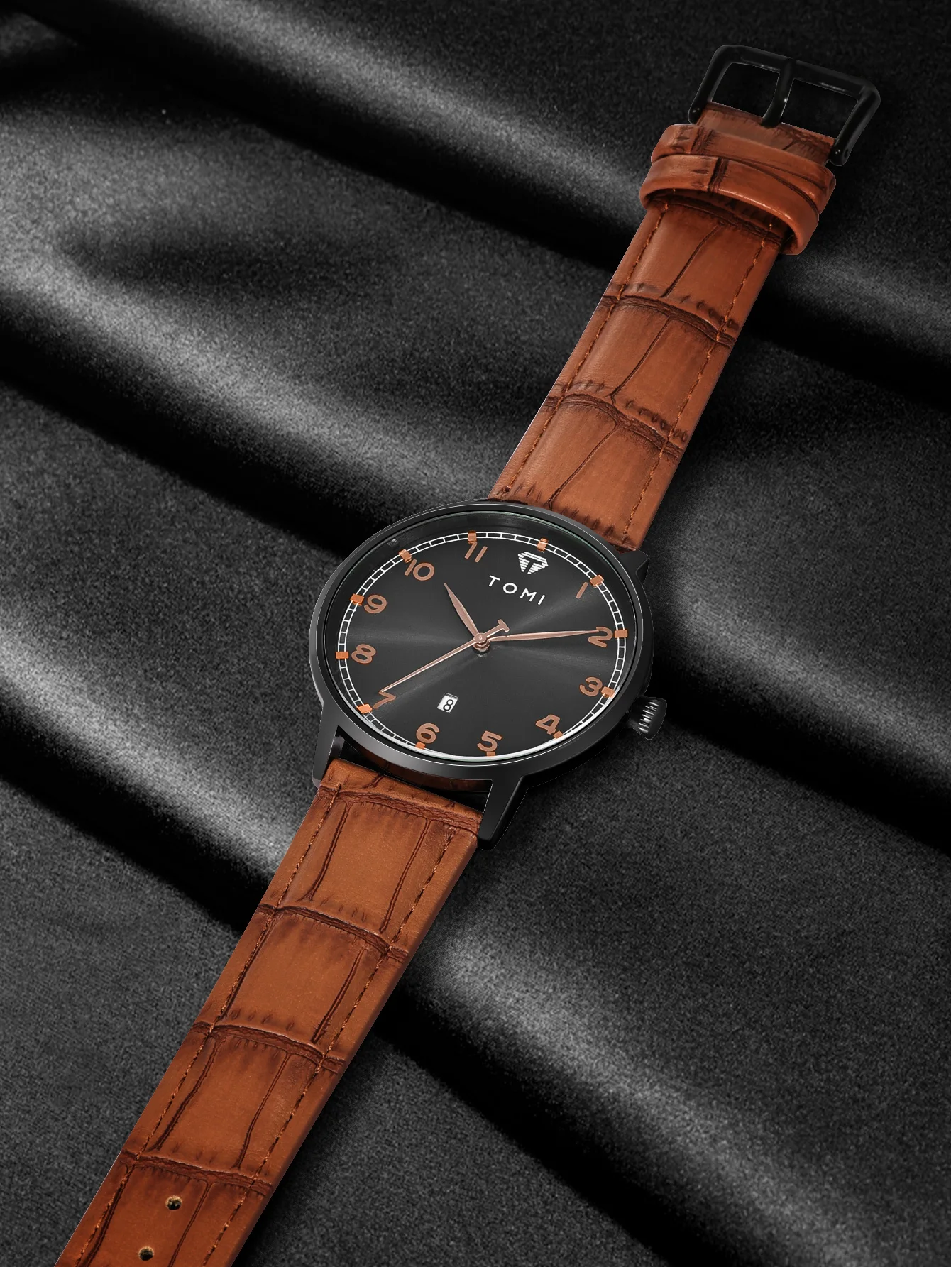 Marceline Zboncak I changed the strap immediately, the original leaves a lot to be desired. The watch is made very well. I don't know if I would get brown again; I would have chosen black or blue instead. The numbers are not brass, so they are very dark.